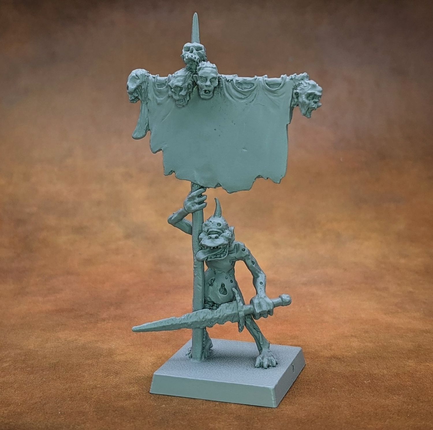 This is the complete set of Plague Devil miniatures. 10 different figures, armed with rusted longswords. They measure approximately 27-29mm to the eye, and are designed to fit 25mm "slotta" bases.
